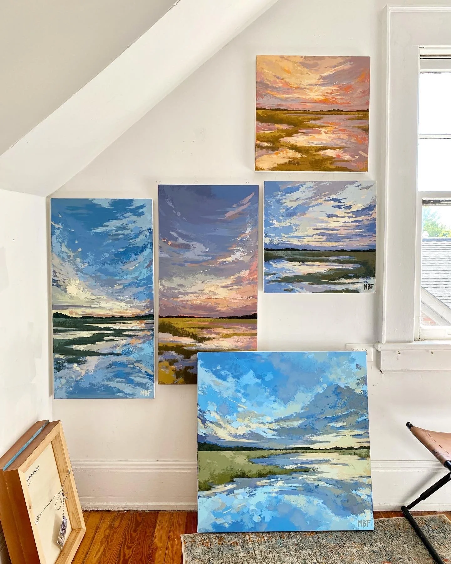 I paint the marsh & the mountains. I’ve lived in the South East for most of my life and in that time, I’ve never grown tired of the magic in the hills to the west or the coast to the east. I’ve always loved playing outside. Whether that was as a camp counselor in the blue ridge mountains for many summers in a row or as a newlywed kayaking through the Savannah waterways, the terrain of the region has been formative– both to my person & my work.